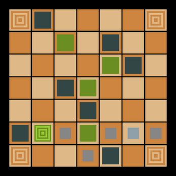 - Green Pieces are the defenders which play second and their goal is to move the king into a corner tile.