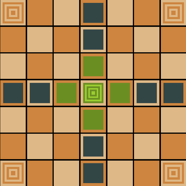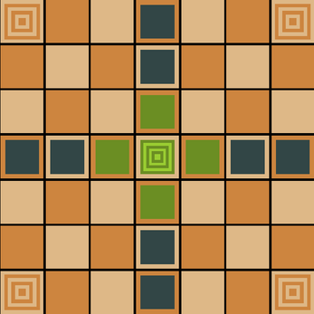- Movement, all pieces share the same being able to in a straight line vertically or horizontally as long as no other pieces are in the way or the edge of the board is reached (like a rook in chess, but not able to move into opponents pieces to capture). no piece execpt the king. the king starts in the middle and has the same pattern as the corner tiles)